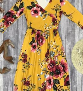 Floral Ruffled V-Neck Wrap Casual Dress – Yellow – $11.99 Only