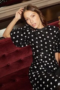 Polka Dot Sequin Puff Sleeve Midi Dress : £75.00