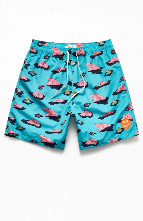 Stay chill this summer in the latest from ambsn. The new Hip 16″ Swim Trunks features an elastic stretch waistline, adjustable drawstrings, side pockets, a single back pocket, and an all-over vibrant hippo pattern.